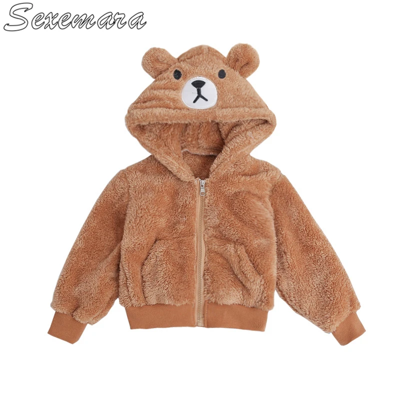 SexeMara Boys Winter Children's Bears Double-sided Arctic Fleece Hooded Jacket Baby Warm Top