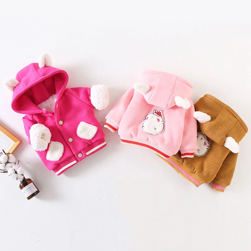 Autumn Winter Baby Girls boys Rabbit Ears Hooded Jackets Children Lamb Coats Clothes Kids Plus Velvet Thick Overcoats Clothing